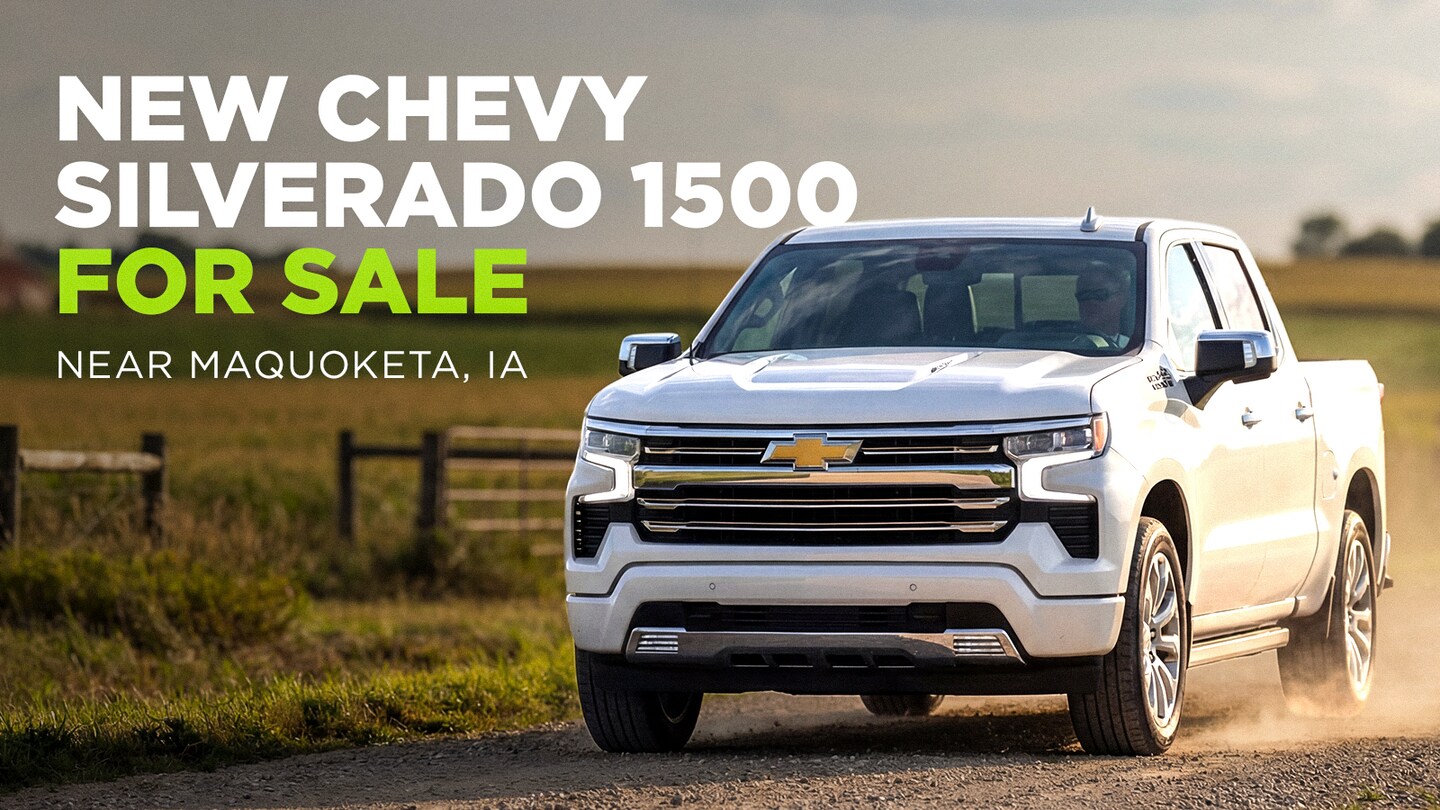 Discover the perfect new Chevy Silverado 1500 near Maquoketa, IA. Enjoy upfront pricing, quick financing approvals, and convenient delivery throughout Eastern Iowa. Explore available inventory, compare trims and features, and book your test drive today.