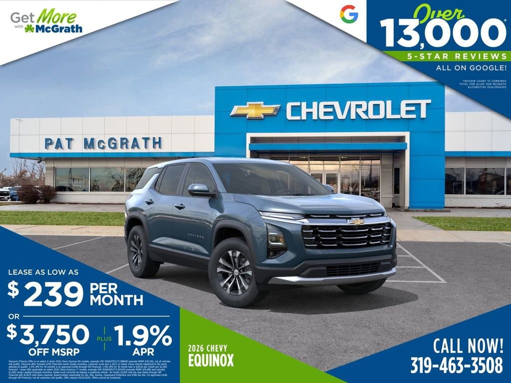 Prices may change at any time and are subject to availability and prior sale. Taxes, title, license fees, and a $180 documentation fee are not included. Pricing reflects all applicable rebates and incentives assigned to the dealer. Example payments are estimates; actual terms vary based on credit approval. APR and payment estimates apply to qualified buyers, not all buyers qualify for advertised rates. Factory cash incentives may not be combined with promotional APR. Fuel economy ratings and driving range figures are based on EPA estimates for new vehicles, and actual mileage and range may vary. Some in-stock vehicles may include a $1,295 Clear Guard Protection package By submitting your phone number online, you consent to occasional SMS or voice calls about our products and promotions; standard messaging rates may apply. Consult dealer for offer eligibility and other details. Factory MSRP is not the final advertised/asking price of the vehicle. Fuel economy figures are EPA estimates. Price includes: $750 - Chevy Loyalty Cash Allowance