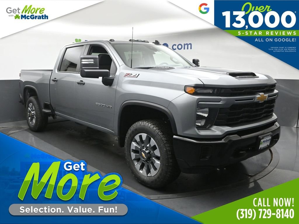 10-Speed Automatic, 4WD, Jet Black Cloth. 2026 Chevrolet Silverado 2500HD Custom 6.6L V8 4WDFactory MSRP: $58,515Welcome to McGrath Auto, your destination for industry leading automotive experiences. We’re proud to deliver unmatched quality and service. With over 13,000 5-star Google reviews, our customers’ trust and satisfaction drive everything we do. Whether you’re buying, servicing, or building your fleet, experience why McGrath Auto is the top choice for all your automotive needs! We’ve got everything from tough trucks to fuel-sipping commuters and adventure-ready SUVs. Our vehicles go through a rigorous inspection process, and we offer multiple layers of certification based on the vehicle's age, mileage and inspection results. Whether you’re shopping for a brand-new ride or a budget-friendly pre-owned gem, we’re here to make the process easy, fun, and stress-free.Freight fees (not required by law) are included in advertised pricing. Tax, title, license, tags, electronic titling fees, a $180 documentation fee, and any other applicable dealer fees are not included and are the responsibility of the purchaser. Some in-stock vehicles may include a $1,295 Clear Guard Protection package that is pre-installed on select vehicles. MSRP (Manufacturer’s Suggested Retail Price) is provided for informational purposes only and is not the dealer’s advertised or selling price. Advertised pricing complies with manufacturer guidelines and may include all applicable rebates and incentives assigned to the dealer. Additional discounts or savings may be available please contact the dealership to confirm eligibility. All prices, payments, specifications, features, and availability are subject to change without notice and prior sale. Example payments are estimates for illustrative purposes only; actual terms vary based on credit approval, and not all buyers will qualify. Certain factory incentives may not be combined with promotional APR offers. All offers may require financing or leasing through approved lenders. While every reasonable effort is made to ensure accuracy, errors may occur. Please verify all information, including pricing, equipment, and availability, with a dealership representative prior to purchase. Some in-stock vehicles may include a $1,295 Clear Guard Protection package. Fuel economy and driving range figures are EPA estimates; actual mileage and range may vary. The dealer is not responsible for the accuracy of information provided by third-party websites or advertisements not generated by the dealership. By submitting your phone number online, you consent to receive occasional SMS or voice communications regarding products and promotions; standard messaging rates may apply. Price includes: $1000 - Customer Cash