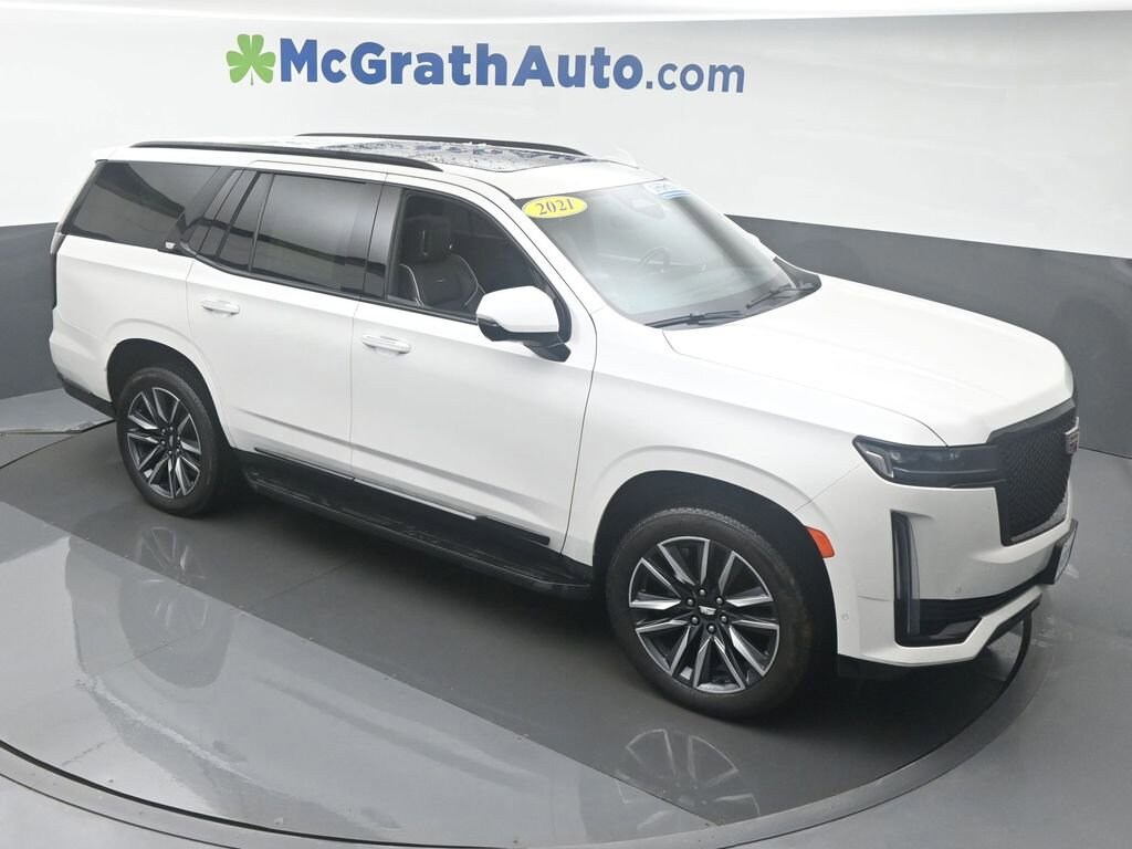 4WD, Black Leather. Clean CARFAX.2021 Cadillac Escalade Sport 6.2L V8 4WDWe're in the customer service business first, the car business second.- H.B. McGrath. Our goal is to offer our customers great vehicles at unmatched prices, but the car business isn't just about the product, it's about the people. Welcome to McGrath, your destination for award-winning automotive excellence! Wwe were voted CBJ's 2024 #1 Coolest Place to Work and winner of 2024 Best of the Best Auto Dealer, Auto Service, and Fleet Dealer. We’re proud to deliver unmatched quality and service. With over 11,000 5-star Google reviews, our customers’ trust and satisfaction drive everything we do. Whether you’re buying, servicing, or building your fleet, experience why McGrath is the top choice for all your automotive needs! If we aren't making our customers happy, we aren't in business. It's as simple as that, and we intend to deliver on the promise: Get More with McGrath.Prices may change at any time and are subject to availability and prior sale. Taxes, title, license fees, and a $180 documentation fee are not included. Pricing reflects all applicable rebates and incentives assigned to the dealer. Example payments are estimates; actual terms vary based on credit approval. APR and payment estimates apply to qualified buyers, not all buyers qualify for advertised rates. Factory cash incentives may not be combined with promotional APR. Fuel economy ratings and driving range figures are based on EPA estimates for new vehicles, and actual mileage and range may vary. Some in-stock vehicles may include a $1,295 Clear Guard Protection package By submitting your phone number online, you consent to occasional SMS or voice calls about our products and promotions; standard messaging rates may apply. Consult dealer for offer eligibility and other details. Factory MSRP is not the final advertised/asking price of the vehicle. Fuel economy figures are official EPA estimates and clearly labeled as such.
