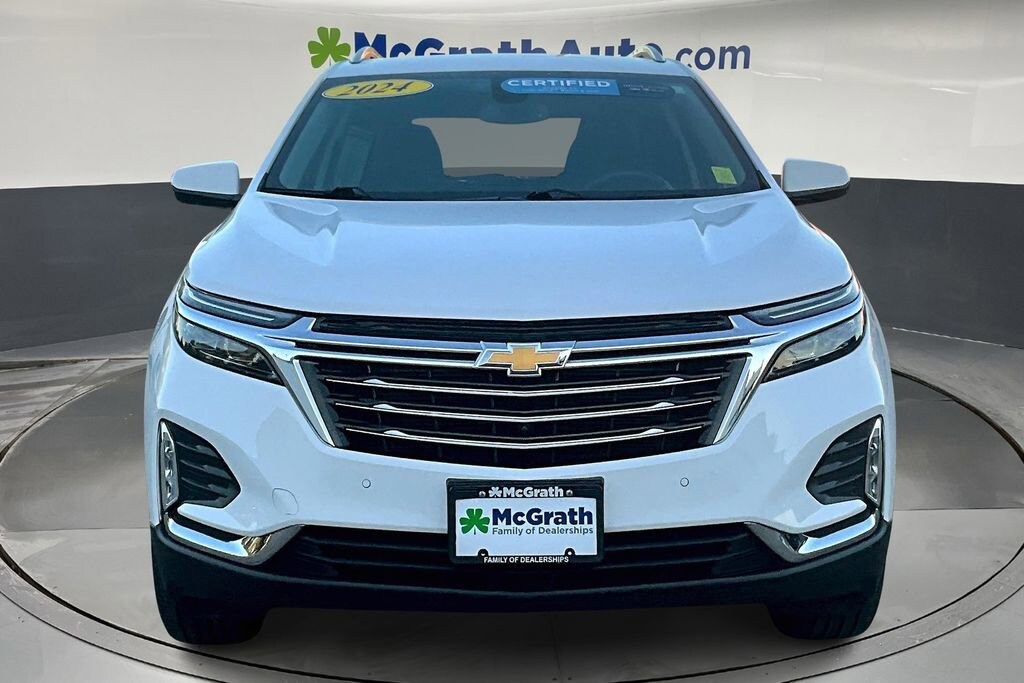 AWD. 24/30 City/Highway MPG Clean CARFAX.Certification Program Details: GM Certified Benefits: * Factory-Backed 6-Year/100,000-Mile Powertrain Limited Warranty * Factory-Backed 12-month/12,000-Mile Bumper-to-Bumper Limited Warranty * Roadside Assistance * 172-Point Inspection 2024 Chevrolet Equinox Premier 1.5L DOHC AWDWe're in the customer service business first, the car business second.- H.B. McGrath. Our goal is to offer our customers great vehicles at unmatched prices, but the car business isn't just about the product, it's about the people. Welcome to McGrath, your destination for award-winning automotive excellence! Wwe were voted CBJ's 2024 #1 Coolest Place to Work and winner of 2024 Best of the Best Auto Dealer, Auto Service, and Fleet Dealer. We’re proud to deliver unmatched quality and service. With over 11,000 5-star Google reviews, our customers’ trust and satisfaction drive everything we do. Whether you’re buying, servicing, or building your fleet, experience why McGrath is the top choice for all your automotive needs! If we aren't making our customers happy, we aren't in business. It's as simple as that, and we intend to deliver on the promise: Get More with McGrath.Prices may change at any time and are subject to availability and prior sale. Taxes, title, license fees, and a $180 documentation fee are not included. Pricing reflects all applicable rebates and incentives assigned to the dealer. Example payments are estimates; actual terms vary based on credit approval. APR and payment estimates apply to qualified buyers, not all buyers qualify for advertised rates. Factory cash incentives may not be combined with promotional APR. Fuel economy ratings and driving range figures are based on EPA estimates for new vehicles, and actual mileage and range may vary. Some in-stock vehicles may include a $1,295 Clear Guard Protection package By submitting your phone number online, you consent to occasional SMS or voice calls about our products and promotions; standard messaging rates may apply. Consult dealer for offer eligibility and other details. Factory MSRP is not the final advertised/asking price of the vehicle. Fuel economy figures are official EPA estimates and clearly labeled as such.