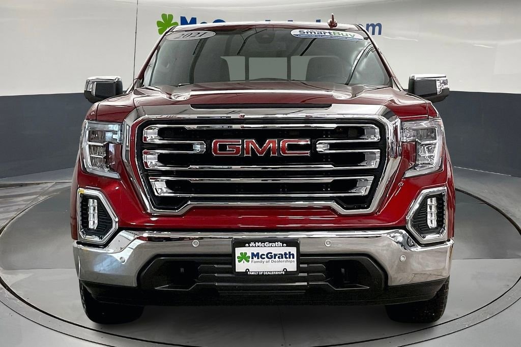 8-Speed Automatic, 4WD, Jet Black Leather. Clean CARFAX.2021 GMC Sierra 1500 SLT EcoTec3 5.3L V8 4WDWe're in the customer service business first, the car business second.- H.B. McGrath. Our goal is to offer our customers great vehicles at unmatched prices, but the car business isn't just about the product, it's about the people. Welcome to McGrath, your destination for award-winning automotive excellence! Wwe were voted CBJ's 2024 #1 Coolest Place to Work and winner of 2024 Best of the Best Auto Dealer, Auto Service, and Fleet Dealer. We’re proud to deliver unmatched quality and service. With over 11,000 5-star Google reviews, our customers’ trust and satisfaction drive everything we do. Whether you’re buying, servicing, or building your fleet, experience why McGrath is the top choice for all your automotive needs! If we aren't making our customers happy, we aren't in business. It's as simple as that, and we intend to deliver on the promise: Get More with McGrath.Prices may change at any time and are subject to availability and prior sale. Taxes, title, license fees, and a $180 documentation fee are not included. Pricing reflects all applicable rebates and incentives assigned to the dealer. Example payments are estimates; actual terms vary based on credit approval. APR and payment estimates apply to qualified buyers, not all buyers qualify for advertised rates. Factory cash incentives may not be combined with promotional APR. Fuel economy ratings and driving range figures are based on EPA estimates for new vehicles, and actual mileage and range may vary. Some in-stock vehicles may include a $1,295 Clear Guard Protection package By submitting your phone number online, you consent to occasional SMS or voice calls about our products and promotions; standard messaging rates may apply. Consult dealer for offer eligibility and other details. Factory MSRP is not the final advertised/asking price of the vehicle. Fuel economy figures are official EPA estimates and clearly labeled as such.
